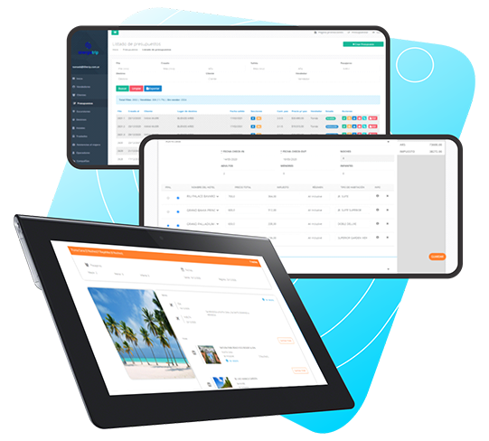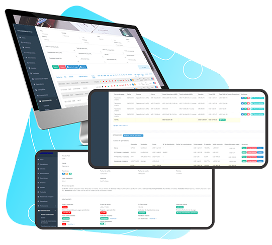 - Incluye un panel de indicadores clave en tiempo real, como: días a la partida, dinero disponible para pagos pendientes, saldo del cliente, porcentaje cobrado, pagos realizados al operador, estado de vouchers y liquidaciones, reporte de feedback, entre otros.